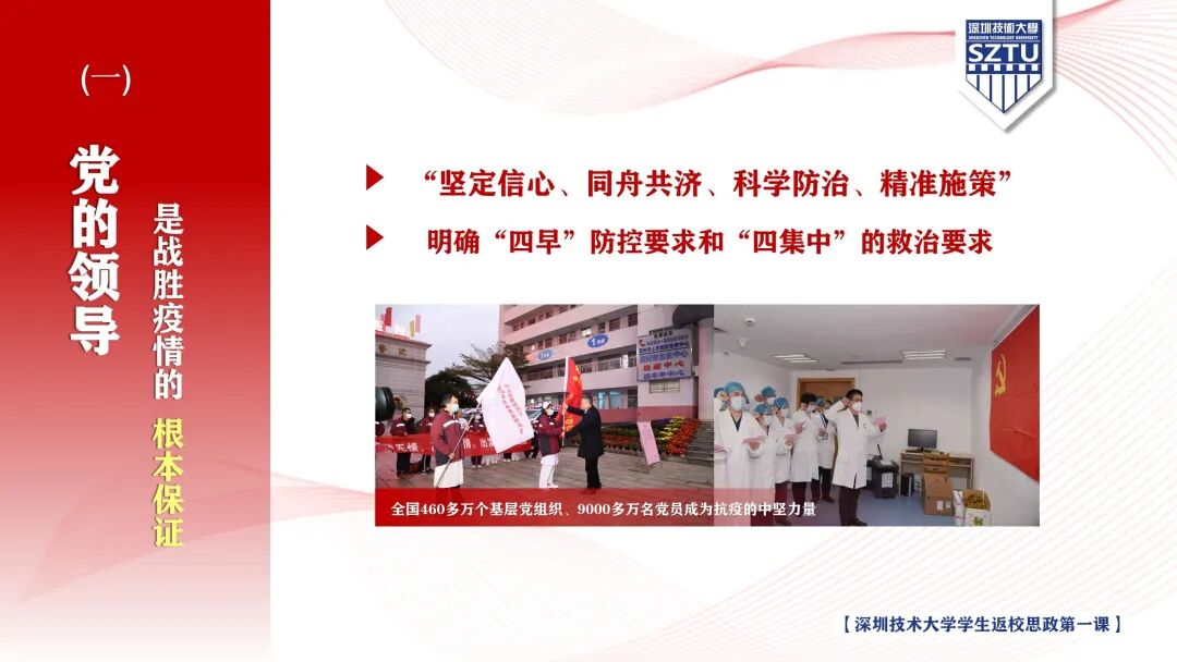 张基宏指出:党的领导是战胜疫情的根本保证。疫情发生后,党中央沉着应对,全体党员勇当先锋,敢打头阵,主动担当、积极作为,社会各行各业人民群众积极配合、万众一心,共同铸就起联防联控的钢铁长城。