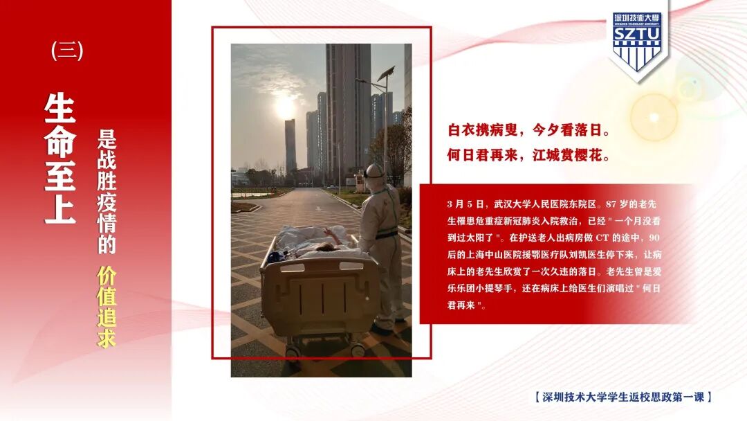 生命至上是战胜疫情的价值追求。人民至上,每一个生命都值得我们尊重。一个国家对生命的态度,是最有说服力的文明标尺。中国抗疫,彰显的就是人民至上的执政理念,展现的就是生命至上的价值追求。