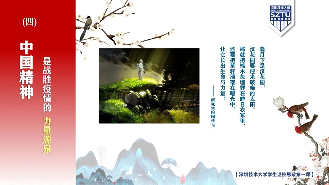 马克思主义学院教师苏涛表示,书记的思政第一课,用丰富的史料和感人的实例娓娓道来中国抗疫经验,引人入胜;从深圳技术大学的老师、同学说起,以小见大,引导师生向身边的榜样学习,鼓舞人心;激励老师同学们把个人梦与伟大的中国梦结合起来,争做出彩中国人,催人奋进!