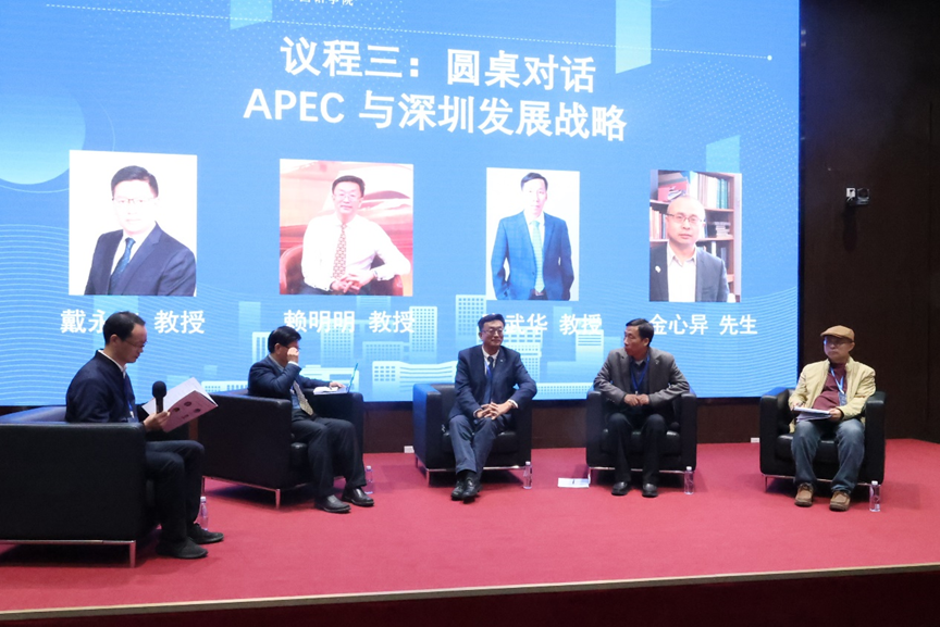 圆桌对话中,戴永红教授、赖明明教授、隆武华教授、金心异先生四位嘉宾围绕APEC赋能、挑战应对及高校使命展开研讨。大家一致认为,APEC将助力粤港澳大湾区深度融合,为深圳深化改革、拓展外循环提供关键窗口;面对复杂环境,深圳应强化科技创新与产业链培育。针对高校作用,嘉宾建议各校结合特色找准定位,通过成立研究中心、拓展国际合作、组建技术转化联盟等方式,在人才培养、智库服务等方面发力,深化产教融合。