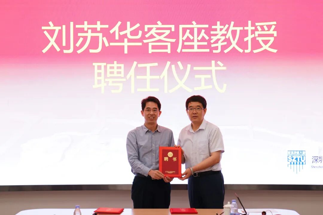 签约仪式上,阮双琛为刘苏华颁发了客座教授聘书。