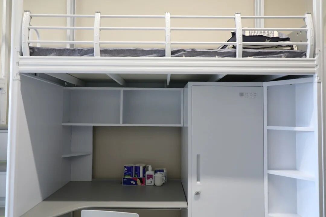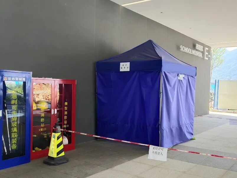 学校在北区E-2学生宿舍14至16层设立了超100间健康观察隔离单人间,并配备了日常生活用品。该区域使用独立的专用电梯,电梯采用脚踏式按键。