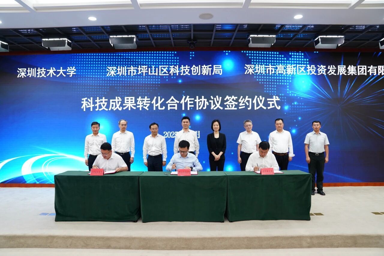 仪式上,在三方领导的共同见证下,深圳技术大学与坪山区人民政府、深圳市投资控股有限公司完成《深化战略合作协议》签约,深圳技术大学与坪山区科技创新局、深圳市高新区投资发展集团有限公司完成《科技成果转化合作协议》签约,标志着多方在人才共育、协同创新、产业共建、成果转化等领域的合作迈入新阶段,将为坪山区乃至粤港澳大湾区高质量发展注入强劲动力。
