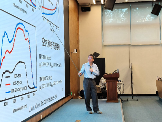 讲座伊始,薄志山教授以“有机太阳电池材料与器件的新进展”为题,系统介绍了有机太阳电池的发展历程与研究现状。他指出,有机太阳电池因其质轻、柔韧、可连续化生产及在弱光环境下仍具备高能量转换效率等优势,在绿色能源领域具有广阔的应用前景。
