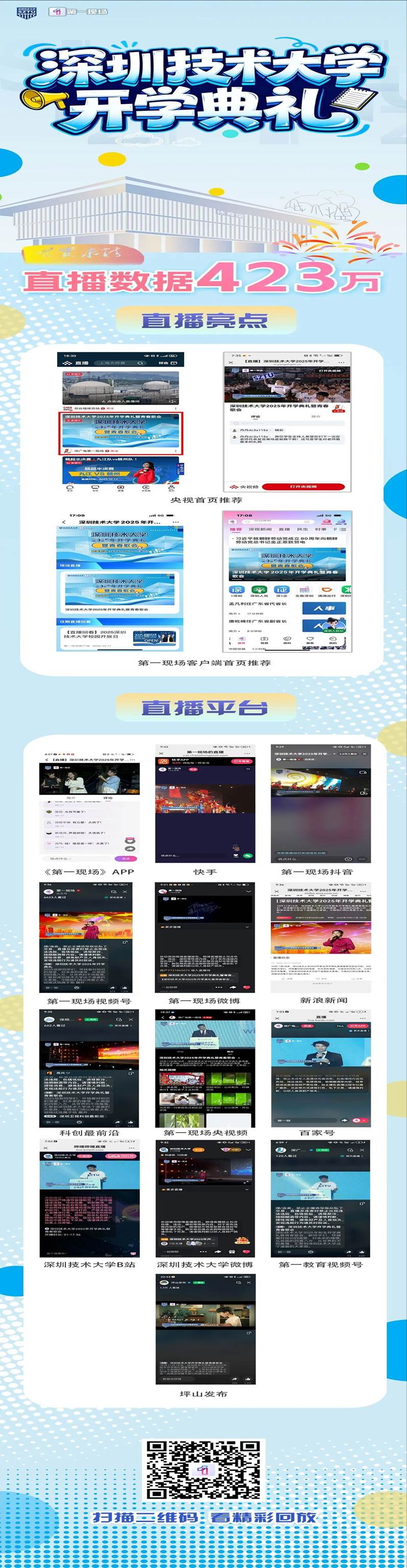 活动在央视频、第一现场客户端、第一现场抖音、视频号、微博、今日头条、新浪新闻、深视新闻视频号、第一教育视频号等多个平台同步进行直播,截止演出结束,累计播放量达423万。