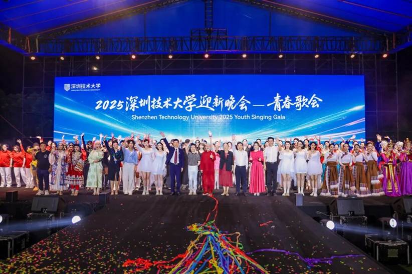 10月11日晚,深圳技术大学在学校运动场举行开学典礼暨青春歌会。党委书记陈秋明,校领导张岩鸿、梁永生、明仲、邓元龙,坪山区副区长刘理,以及来自越疆科技、华为、腾讯、大族激光、比亚迪、荣耀、亚辉龙等企业代表,深技大各学院院长、各部门负责人、教师代表等出席典礼,全体2025级新生参加典礼。